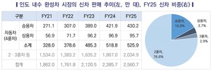 인도가 14억 인구의 잠재 수요와 산업 기반 등을 앞세워 글로벌 완성차 제조와 소비의 주요 거점이 될 기본 조건을 갖췄다는 분석이 나온다.전동화 규제가 강한 선진 자동차 시장에 비해 기존 내연기관화 하이브리드 기술을 활용할 수 있는 완충지대에다가 중국에 집중된 공급망 다변화 흐름에 올라타 글로벌 완성차 생태계에서 괄목할 성장을 보일 것이란 분석이다.세계 3위 자동차 시장, 보급률 낮아 성장 가능성↑한국자동차연구원은 24일 보고서를 통해 인도가 2024년 4월부터 2025년 3월까지 승용차 430만대·상용차 96만대가 판매된 단일 국
