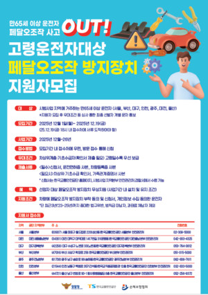 한국교통안전공단이 경찰청, 손해보험협회와 함께 고령운전자의 안전운전을 위한 페달 오조작 방지 장치 2차 무상 보급사업을 추진한다고 23일 밝혔다.앞서 3개월간 1차 시범사업을 진행한 결과 비정상적 가속으로 인한 페달 오조작 의심 건수가 총 71회로 확인됐고 페달 오조작 원천 차단 효과가 있는 것으로 분석됐다. 비정상적 가속은 전·후진 15km/h 이하 주행 중 가속 페달을 80% 이상 밝을 시, 주행 중 급가속으로 RPM이 4500rpm에 도달할 시로 분류된다.2차 보급사업은 12월 1일부터 서울특별시, 부산광역시, 대구광역시, 인
