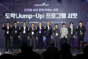 한경협중소기업협력센터와 중소벤처기업진흥공단이 3일 FKI타워 컨퍼런스센터 1층 그랜드볼룸에서 ‘도약(Jump-Up) 프로그램 서밋’을 개최했다.이번 행사는 중소벤처기업부, 중소벤처기업진흥공단이 주관하며 한경협중기센터 주최로 Jump-Up 프로그램에 참여한 유망 중기업의 사업 성장과 경쟁력 강화를 지원하기 위한 네트워킹 및 정보 교류의 장으로 마련됐다. 행사에는 김창범 한경협중기센터 이사장(한경협 부회장), 이병철 중진공 부이사장 등 주요 기관 관계자와 참여기업 임직원 등 200여 명이 참석했다.트렌드 분석부터 구매상담회까지 ‘스케일