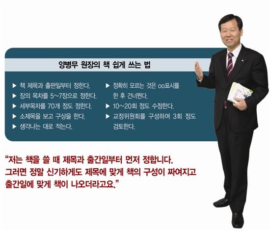 양병무 서울사이버대 평생교육연구원장은 책 전도사로 유명하다. 하지만 그가 책을 쉽게 쓰는 법을 강의한다는 것을 아는 사람은 의외로 많지 않다.