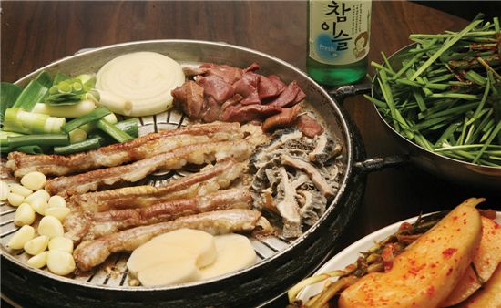 일단 주문하면 부추 무침과 직접 담근 총각김치 그리고 소 곱창 하면 바늘과 실처럼 따라 다니는 천엽과 간이 기본으로 제공된다. 겨울에는 선짓국도 기본 안주로 주는데 여름 2 개월 동안에는 시원하고 아삭한 오이냉국을 대신 제공한다. 곱창은 김금자(53·여) 사장이 일일이 초벌해 내온다. 이렇게 초벌된 곱창은 판에 올려놓고 각종 야채와 함께 서서히 익혀 먹는 식이다. 모듬을 시키면 염통, 벌집, 대창 등과 곱창을 함께 구워 내는데 골라 먹는 재미가 쏠쏠하다.