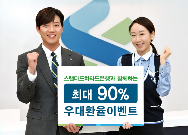 [사진제공=스탠다드차타트은행]이 기간동안 인터넷뱅킹 또는 모바일뱅킹을 통해 스탠다드차타드은행 홈페이지에 로그인해 우대환율 이벤트를 클릭하면 매일 선착순 1000명까지는 90% 우대환율 쿠폰을, 1001번째부터는 80% 우대환율 쿠폰을 받을 수 있다. 인터넷뱅킹이나 모바일뱅킹을 이용하는 모든 고객이 최소 80%의 환율 우대가 가능하다.
