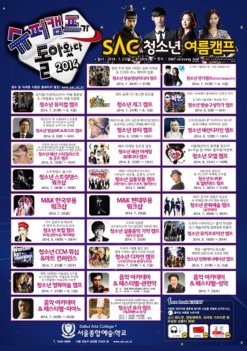 패션모델예술학부는 서울패션위크 총연출자 정소미 교수와 도전슈퍼모델코리아3에서 3위로 입상한 톱모델 여연희(SAC 패션모델 11학번)를 대표강사로 하는 모델캠프는 8월 13~14일 진행하며, 뷰티예술학부는 애프터스쿨, 선미 메이크업 함경식 교수, 한지민, 신하균 헤어 다호 교수 등을 대표강사로 하는 뷰티캠프를 8월 7~8일 진행한다.