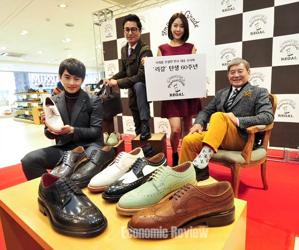 ▲ 6일 오전 서울 중구 금강제화 명동매장에서 신사화 '리갈(Regal)' 출시 60주년을 기념해 꽃미남부터 꽃할배까지 세대별 한국 남자의 멋을 표현하는 이색적인 행사와 스페셜 에디션 7종을 새롭게 선보이고 있다. 금강제화는 1954년 창립과 함께 운영해온 리갈의 60주년을 기념해 전국 금강제화 직영매장에서 리갈(20만원)이상을 구입한 고객에게 고급 명함지갑을 사은품으로 증정하는 등 다양한 행사를 진행하고 있다. 사진 박재성 기자