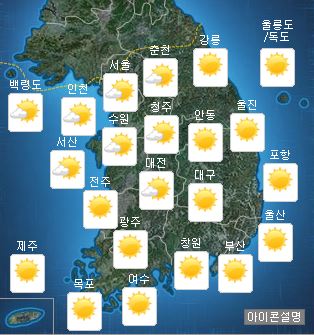 오늘(24일) 한낮 기온은 서울 21도, 전주와 대구가 22도로 어제보다 좀 더 올라 평년기온을 웃돌아 포근하겠다.