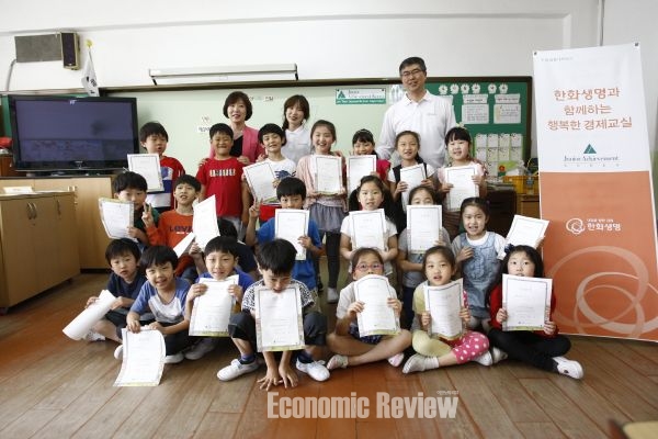 한화생명은 지난해 10월 비영리 기관인 JA Korea와 함께 경제교육을 전문적으로 실시할 경제교육 봉사단 ‘해피 튜터(Happy Tutor)’를 출범했다. 경제교사 양성과정을 수료한 40여명의 직원들이 경제교육을 원하는 서울지역의 초등학교 1~3학년을 대상으로 분기마다 1회 실시한다.