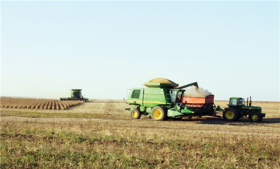 콩 수확하는 러시아 연해주 한국기업 농장. 현대중공업이 설립한 현대아그로는 올해 3천500㏊ 밭에 콩 등을 심어 풍성한 수확을 거뒀다.