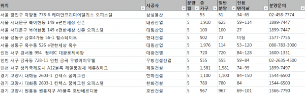 지역별 일반분양 예정 물량은 수도권 43곳 3만4052가구(서울 5곳 963가구, 경기 35곳 3만233가구, 인천 3곳 2856가구), 지방 27곳 2만1725가구다.