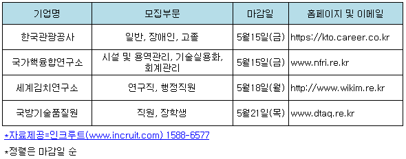 ▲ [한국관광공사] 인턴 모집_ 5월 15일(금) 17시까지