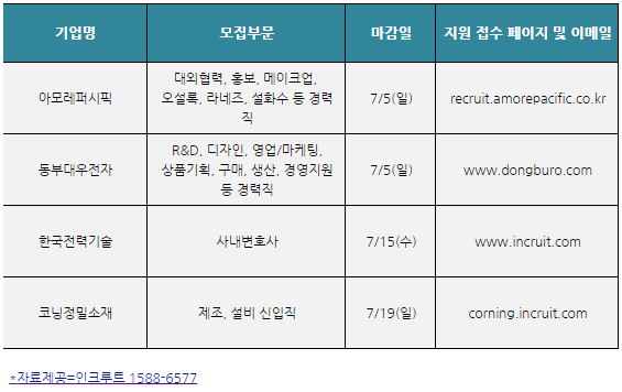 ▲ [동부대우전자] 경력사원 모집_ 7월 5일(일) 24시까지