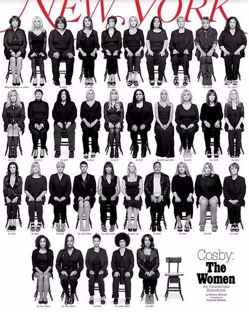 미국 일간지 헤럴드 트리뷰의 일요특판인 뉴욕 매거진이 성추행 등으로 물의를 일으킨 원로 코미디언인 빌 코스비가 성추행 한 35명의 여성들 사진을 커버스토리 표지에 게재해 화제가 되고 있다.