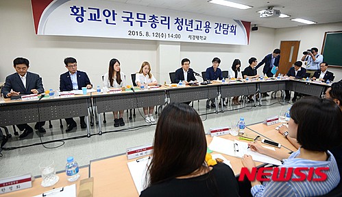 황교안 국무총리는 12일 서울 마포구 서강대를 방문해 취업준비 대학생·기업대표 등과 청년고용 간담회를 갖는 자리에서 "정부는 '청년 고용은 노동개혁에 달려있다'고 판단하고 노동개혁을 적극 추진하고 있다"고 강조했다.
