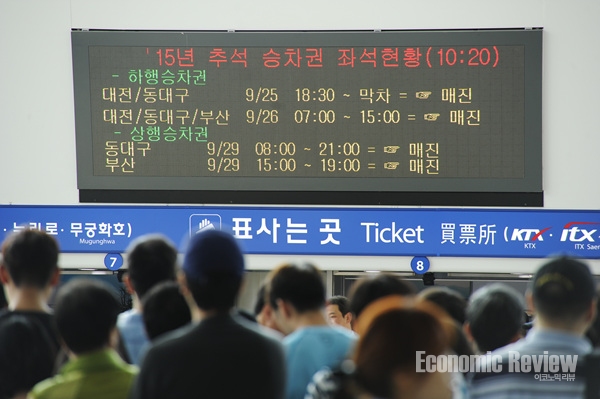 추석 예매는 1일(화), 2일(수) 2일간 걸쳐 진행한다. 1일에는 경부, 동해, 경전, 경북, 대구, 충북, 경의, 경원,동해남부선, 2일에는 호남, 전라, 장항, 중앙, 태백, 영동, 경춘선 승차권을 판매한다.