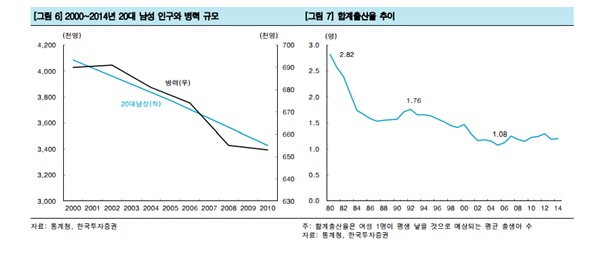 출산 감소로 징집대상 인구가 줄고 복무기간이 단축되는 구조적 원인에 따라 방위산업의 성장세가 한동안 지속될 것이라는 전망이 나왔다.