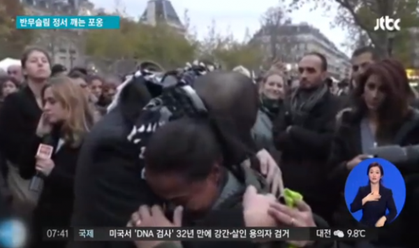 WP는 이날 광장에서 있었던 프리허그를 통해 “무슬림 청년의 말이 테러로 얼어붙은 파리 시민의 마음을 녹였다”고 전했다.