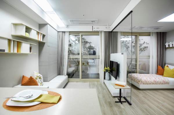 서울 송파구 문정동 미래형업무지구 ‘힐스테이트 에코 송파’도 천장고가 2.4m로 일반 오피스텔 천장고보다 10cm높아 넓은 공간감을 느낄 수 있다. 공간 효율성을 높이기 위해 현관과 복도공간을 활용한 다양한 수납 공간을 배치했다. 입주자의 편의를 위한 냉장 냉동고, 전자레인지, 세탁기, 천장형 냉방기 등 빌트인 가전제품이 제공된다. 단지 지하1층에는 휴게실, 코인세탁실, 무인택배실, 대형물품을 수납할 수 있는 세대수납창고 등 입주민 편의시설이 마련될 예정이다.