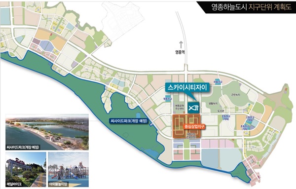 영종하늘도시 스카이시티자이는 택지개발지구 A39블록(인천시 중구 중산동 1881-2)에 지하 2층~지상 31층, 10개 동, 전용 면적 91~112㎡, 총 1034가구로 조성된다. 전용 면적 △91A㎡ 269가구 △91B㎡ 269가구 △98A㎡ 162가구 △98B㎡ 240가구 △112㎡ 94가구로 최근 분양시장에서 대세로 자리 잡은 중소형이 아닌 준중대형 평면으로 구성된 것이 특징이다.