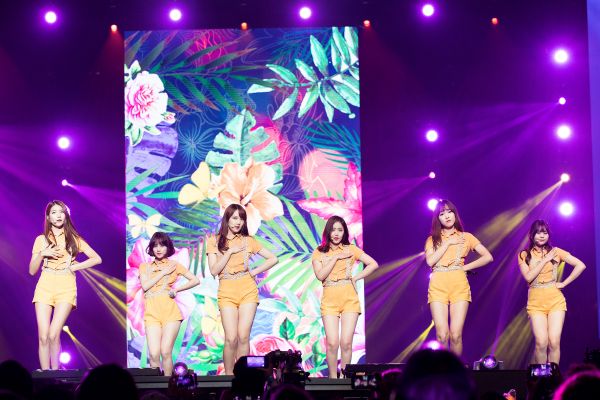 ▲ 지난달 30일(현지시각) 미국 LA 스테이플스센터에서 열린 'KCON 2016 LA'에서 그룹 '여자친구'가 공연을 하고 있다. KCON 2016 LA은 케이팝 콘서트를 매개로 드라마, 영화 등 한류 콘텐츠에 IT와 패션, 뷰티 등 국내 기업의 제품을 직접 체험하는 컨벤션을 융합한 행사로 지난달 29일부터 31일까지 열렸다. 사진=CJ E&M