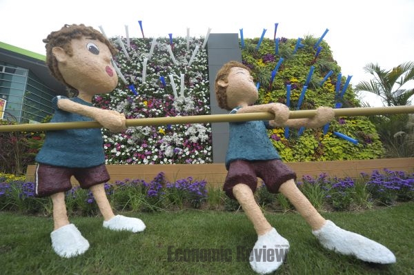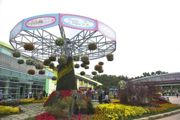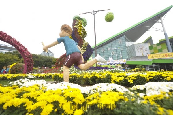 가을꽃 향기 정원에는 줄다리기, 박 터트리기, 공굴리기 등 가을 운동회 모습을 국화, 샐비어 등 3만 그루의 꽃으로 형상화했다.