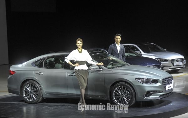 현대자동차(주)가 22일 오전 김포공항산업단지에서 '신형그랜저' 를 공개하고 있다.