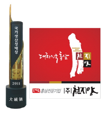 홍삼전문기업 천지양은 지난6일 코엑스에서 오디토리움에서 개최된 ‘2011년 제 35회 국가생산성대상 시상식'에서 홍삼업계에서 유일하게 국가 생산성 대상 생산성향상우수기업으로 선정되었다.
