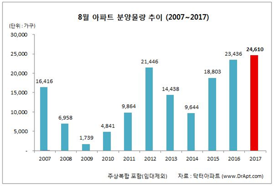 이는 역대 최대를 기록한 지난해 8월(분양실적 2만3436가구)보다 5.0%(1174가구) 늘어난 것이다.