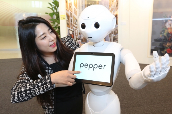 LG유플러스는 28일 일본 소프트뱅크의 로봇전문기업인 소프트뱅크로보틱스가 개발한 인공지능 로봇 페퍼가 10월부터 자사 플래그십 매장을 비롯해 금융, 서점, 의료, 유통 등 다양한 분야의 고객접점에 도입된다고 밝혔다.