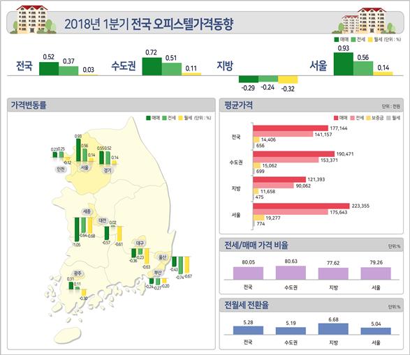 오피스텔 매매가격은 전국에서 전 분기 대비 0.52% 상승했다. 교통 접근성과 생활여건이 우수한 서울·경기 등 수도권 지역이 전 분기 대비 0.72% 오르며 가격 상승을 견인한 결과다.