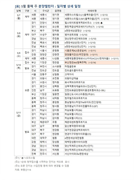 14일 부동산114에 따르면 5월 셋째 주는 전국에서 총 9,769가구가 청약을 진행한다. 수도권은서울 영등포구 문래동6가 ‘e편한세상문래’ 등 5,239가구, 지방은 부산 기장군 일광면 ‘일광신도시비스타동원(B1) 등 4,530 가구가 분양한다. 국토교통부가 건설업을 등록하지 않은 분양대행업체에 대해 대행업무를 금지시키자 모델하우스 오픈 일정을 다시 조정하는 분위기다.