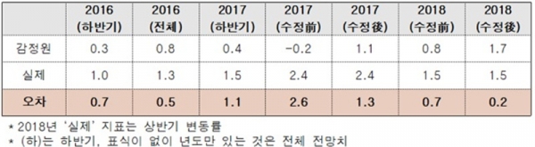 올해에도 감정원의 집값 전망 오보는 계속됐다. 올해 감정원이 발표한 수도권 매매가격 상승률은 0.8%로 전망됐지만 실제로는 1.5% 상승세가 상반기 내내 이어졌다. 결국 7월 2018년 수도권 매매가격 상승률을 1.7% 수정했다.
