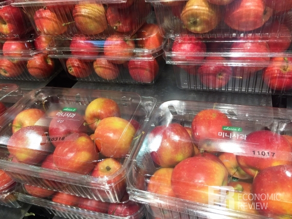 미니과일은 미니채소에 비해 품목 수가 적은 편이다. 방울토마토는 누구나 알고 있을 만큼 이미 대중화돼 대과토마토 이상으로 소비되고 있다. 최근 들어 시장에 꾸준히 출하되고 있는 미니과일은 미니사과와 애플수박을 꼽을 수 있다.
