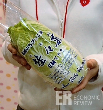 JA(일본농협)히로시마중앙 소속 농가들은 지난해부터 미니배추 ‘와와사이’ 품종을 본격적으로 보급 받아 출하하기 시작했다. 미니배추 품종은 일반 배추의 1/2 사이즈인 20㎝ 정도의 길이로, 마트 비닐봉투에도 충분히 넣을 수 있는 작은 크기다. 일반 배추와 비교해 잎사귀 식감이 부드러워 샐러드용으로도 적합하다. JA히로시마중앙 농가들이 미니배추를 재배하게 된 계기는 원래 지역축제 선물용으로 제공하기 위해서인데, 예상 외로 소비자 반응이 좋아 본격적으로 생산하기 시작했다. 지난해 1만7000주를 정식했고, 올해는 2만주까지 늘렸다.