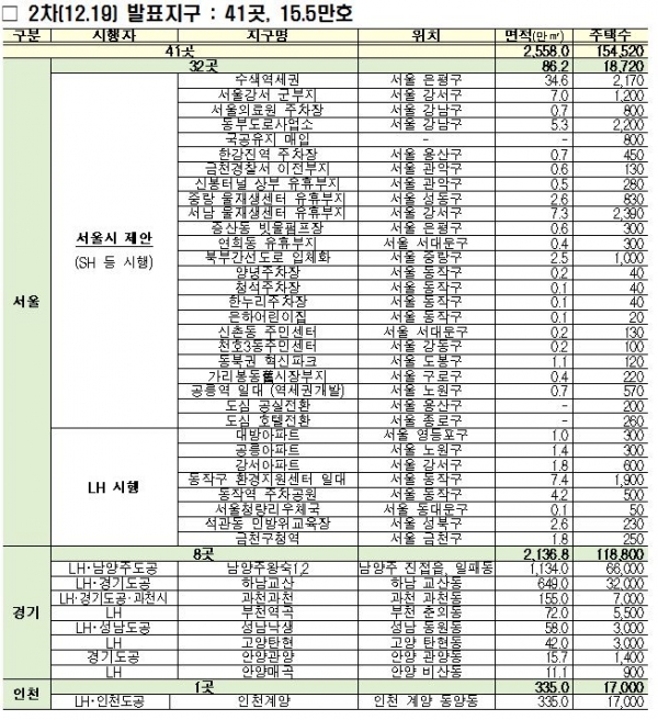앞서 정부는 주택시장 안정을 위해 지난 9.13 대책을 통해 수도권 택지에 30만호 공급계획을 발표했다. 1차로 17곳에 3만5000호를 발표한 데 이어 연말 10만호 규모의 2차 공급계획 발표를 예고했다. 이후 지난 10월부터 두 달간 정부는 20만호 이상 후보지를 확보하고 지자체와 협의를 진행했다.
