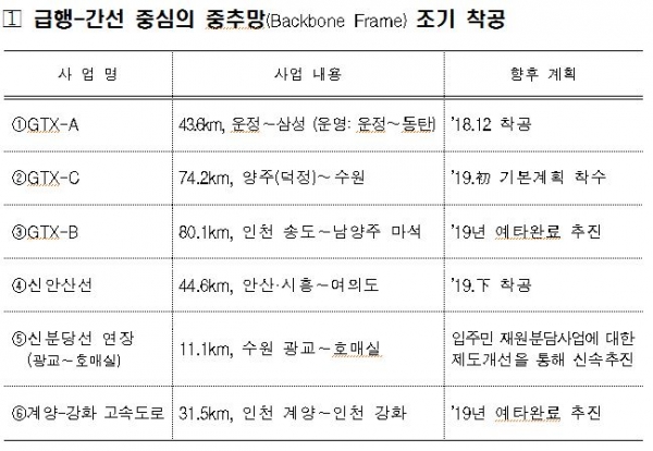 GTX-A, 신안산선의 조속한 착공은 물론 최근 예타를 통과한 GTX-C노선도 내년 초 기본계획 수립에 착수해 이르면 2021년에 착공할 계획이다.