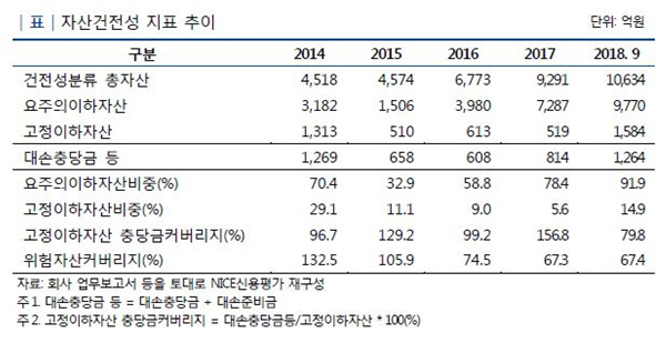 정부 정책 등을 고려하면 자산건정성 악화가 우려된다. 다만 경쟁사 대비 양호한 재무상태를 유지하고 있다는 점은 긍정적이다.