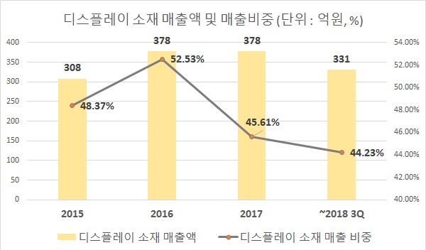 최근 몇 년간 중국의 LCD 생산능력 확대로 공급과잉이 심화돼 국내 LCD 생산물량이 적어진 탓이다. 천보는 디스플레이 매출의 70% 내외를 내수에서 충당한다. 디스플레이산업협회 등에 따르면 국내 LCD 수출은 지난 2017년 전년 대비 0.8% 증가하는데 그쳤다. 반면 중국의 디스플레이 시장 점유율은 2015년 14.2%에서 2017년 20.5%로 크게 늘었다.