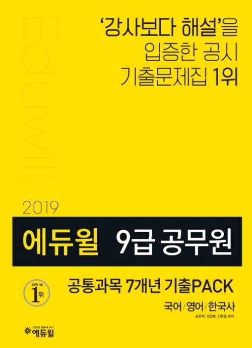 [이코노믹리뷰=전진혁 기자] 종합교육기업 ㈜에듀윌이 출간한 '2019 에듀윌 9급공무원 공통과목 7개년 기출 PACK' 교재가 온라인서점 YES24의 9급공무원 영어 기출문제집 부문 4월 베스트셀러 1위를 차지했다.