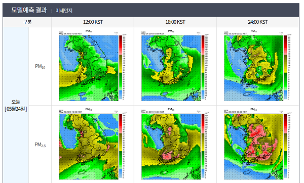 전국 대부분의 미세먼지 농도는 '나쁨'이다. 다만, 제주도는 '한때 나쁨'이다. WHO 권고 기준으로는 강원 영동과 제주도를 제외한 전국이 '매우 나쁨'이고, 강원영동 지역과 제주도만 '나쁨' 수준을 보이겠다.