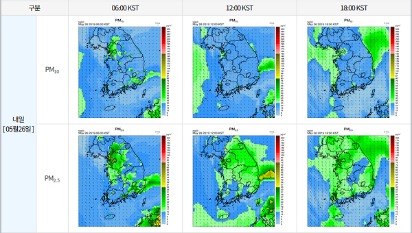 이날도 미세먼지 농도는 전국이 '보통'수준을 나타내겠다. WHO 권고기준 오전 수도권과 충청도 지역은 ‘나쁨’이다. 그 밖의 전국은 ‘보통’ 이다.