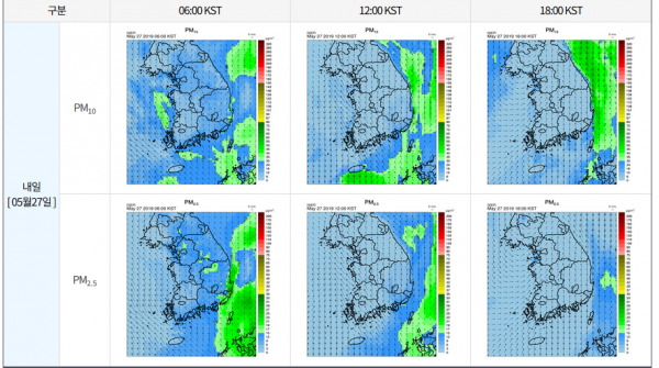 내일도 미세먼지 농도는 전국이 '보통'수준을 나타내겠다. WHO 권고기준 전국은 ‘보통’ 이다.