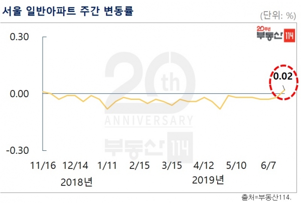 27일 부동산 정보분석업체 부동산114에 따르면 서울지역의 6월 3주 주간 매매가는 0.03% 상승하면서 지난 11월 이후 약 29주 만에 상승 전환했다. 재건축 단지의 상승은 주욱 이어져 왔지만, 이제 일반 아파트매매시장까지 재건축 시장이 견인하고 있다는 분석이다. 해당 주의 재건축 아파트와 일반 아파트는 각각 0.12%, 0.02% 상승했다.