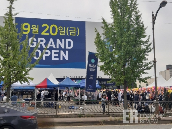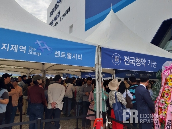 이날 지제역 더샵 견본주택 앞에는 서울에 위치한 견본주택 못지 않은 대기 줄이 길게 늘어서 있었다. 지제역 더샵 견본주택 분양 상담사는 "집을 미분양 물량으로 사던 동네에서 청약을 써서 사야 할 집이 생겼다"고 말했다.