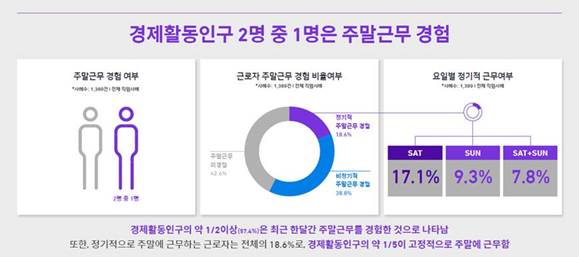 사단은 2017년 6월 22일. 한 장의 보도자료에서 시작됐다. 풀러스는 2017년 3월 설립한 ‘풀러스 교통문화연구소’의 첫 프로젝트로 출퇴근 시간에 대한 새로운 정의를 시도했다. 연구소는 조사회사 한국갤럽과 함께 2017년 4월 25일부터 28일까지 나흘간 만 19세 이상의 경제활동 인구 1151명을 대상으로 출퇴근 시간과 장소에 대한 설문조사를 벌인 결과 근로자 3명 중 1명에 해당하는 32.5%는 통상의 출퇴근 패턴인 ‘주 5일, 하루 8시간’에서 벗어난 비정형 근무환경에서 일하고 있으며, 5명 중 1명은 주말에도 정기적으로 출퇴근하는 것으로 나타났다고 밝혔다.
