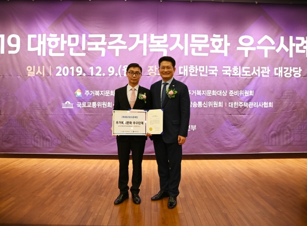 [이코노믹리뷰=최지웅 기자] 종근당고촌재단은 9일 서울 영등포구 국회도서관 대강당에서 열린 ‘2019 대한민국 주거복지문화대상’ 시상식에서 종합대상을 수상했다.