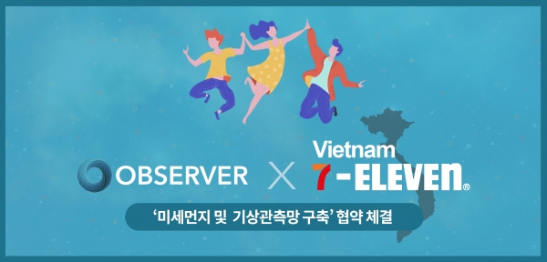 이 같은 상황에서 베트남에 본격적으로 매장을 확장하고 있는 세븐일레븐과 해외 기상 및 미세먼지 관측시장에 진출하고자 하는 옵저버가 상호 상생하고 시너지를 낼 수 있는 협약을 체결했다.
