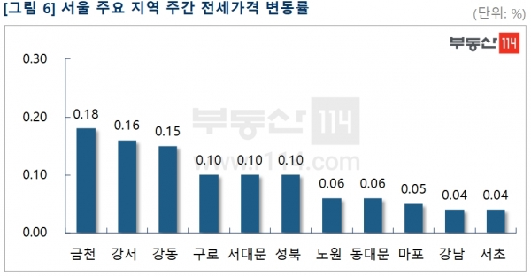 3일 부동산114가 발표한 ‘수도권 주간 아파트 시장동향’에 따르면, 기존 임차인의 재계약이 늘어나는 분위기다. 서울 전셋값은 전주 대비 오름폭이 커지며 0.05% 상승했다. 이밖에 신도시와 경기·인천은 각각 0.01%, 0.02% 올랐다.