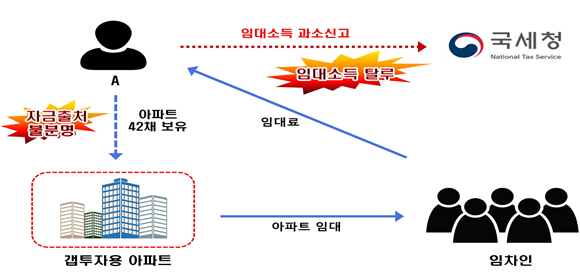 [이코노믹리뷰=이소현 기자] 40대 미국인 A씨는 갭투자를 통해 수도권과 충천권 아파트를 매입했다. A씨가 갭투자를 통해 사들인 소형 아파트는 총 42채로, 금액으로만 따져도 67억원에 이른다. 그러다 최근 국세청 조사에서 덜미를 잡혔다. A씨의 국내소득이 많지 않은데, 외환 수취액도 없어 자금 출처가 불명했다. 아파트 중 일부는 주택임대업을 등록하지 않고 임대소득을 과소 신고한 혐의도 제기됐다.