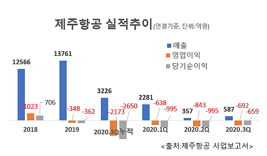 AK홀딩스 재무건전성을 놓고 볼때 현재까진 큰 문제는 없다. 그러나 앞으로도 제주항공을 향한 추가적인 수혈이 불가피하다는 점이 우려요소다. 제주항공은 지난 1분기 영업손실 638억원을 기록한데 이어 올해 3분기에도 692억원의 적자를 보이면서 3분기 누계영업손실이 2173억원에 달했다.