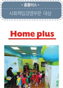 홈플러스 사회공헌활동은 문화교육경영, 환경경영, 나눔경영으로 요약된다.