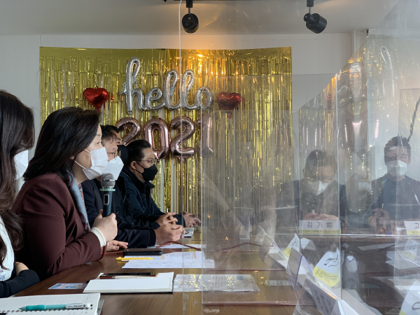 9일 서울 마포구 홍대 파티룸 로망플뢰브에서는 '제대로 된 코로나 재난 보상을 위한 손실보상 소급적용 등 자영업자 단체 간담회'가 개최됐다. 이날 카페, 당구장, PC방 등 각 업종의 대표들은 심상정, 배진교 정의당 의원과 만나 지난 1년간 정부가 보여준 지원책에 대해 평가하고, 현 실정과 손실보상 소급적용의 필요성에 대해 논의했다.